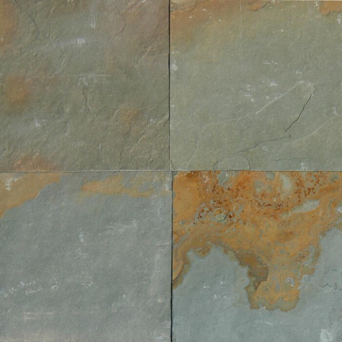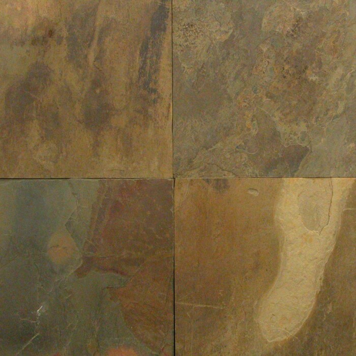 Rustic Gold Slate Tile from India features deep grays, oranges, golds and browns. Available in finishes such as gauged, misc, and split face. This slate tile is suitable for interior flooring, backsplashes, and walls, and exterior projects in non-freezing climates.