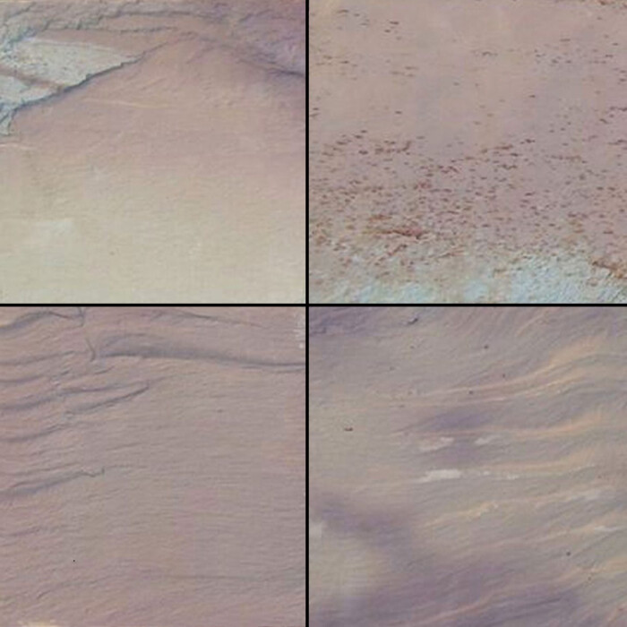 Multi Pink slate is a largely medium-gray colored stone with a dash of pale pink breaking through its cool-toned face. It is irregular in pattern, with swathes of color presenting themselves in a non-uniform fashion.